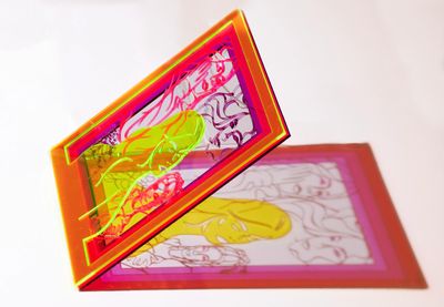 Designed three separate layers in procreate, converted into SVG files in Adobe Illustrator to be compatible with GlowForge. Chose brightly coloured acrylic sheets, and sent to GlowForge laser cutter to create wooden design. Experimented with lighting design to play into the translucency and colour overlay of the acrylic sheets.